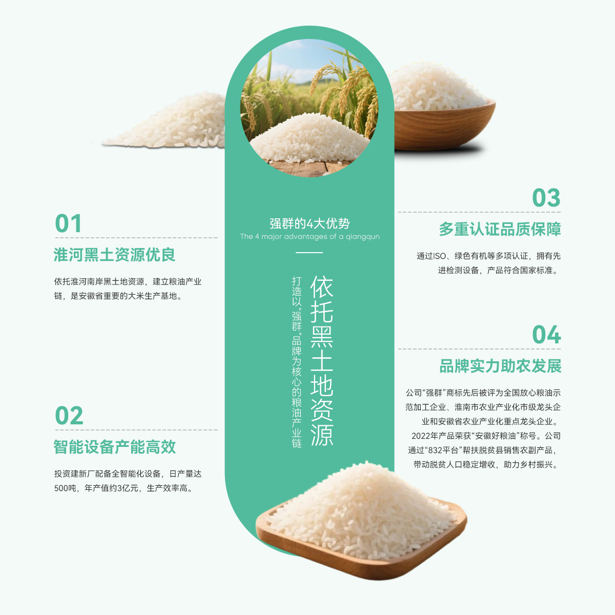 壽縣強群糧油貿(mào)易有限公司成立于2011年,座落在淮南市壽縣澗溝鎮(zhèn),是一家集種植、加工、收儲、銷售于一體、以生產(chǎn)中、高檔質(zhì)優(yōu)、特色類大米為主的綜合性企業(yè)。公司依托準河南岸的黑土地資源,打造以“強群”品牌為核心的糧油產(chǎn)業(yè)鏈,是安徽省重要的大米生產(chǎn)基地。   為響應市場增長需求,公司2021年啟動二期擴產(chǎn)工程,其中新生產(chǎn)廠區(qū)建設投入資金近億元,建設現(xiàn)代化新生產(chǎn)線,總占地面積約4000...